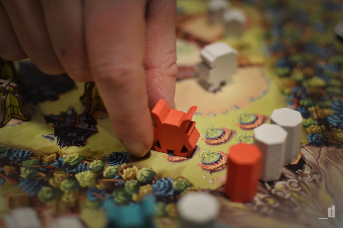 Hlavně před první hrou jsem byl doslova zavalen tím množstvím figurek a žetonů, které musíte rozmístit jak na kruhový plán vesnic, tak na desky hráčů. Kromě toho vás čeká příprava zásob karet trollů, královských karet a nakonec ještě balíčky karet kol pro jednotlivé hráče. Vše se navíc odvíjí od toho, kolik se vás sešlo u stolu, takže budete muset část herního obsahu vyřadit. Dobrou zprávou je, že už podruhé, ve chvíli kdy se s hrou lépe seznámíte, je příprava o dost intuitivnější. To tady ostatně platí i pro samotnou hratelnost. Během čtení pravidel jsem byl občas docela zmatený a i když se z nich dá hra pochopit, i díky spoustě příkladů, asi bych volil trochu jinou strukturu. A stejnou nepřehlednost jsem cítil i v průběhu první partie. Velké množství polí, políček, figurek, ikonek v na první pohled chaotickém rozmístění. Ale světe div se, ono to po pár tazích všechno funguje a navíc skvěle.