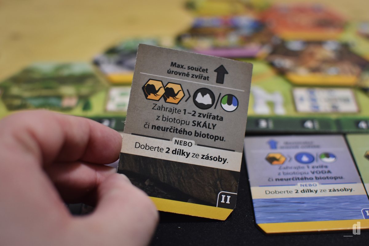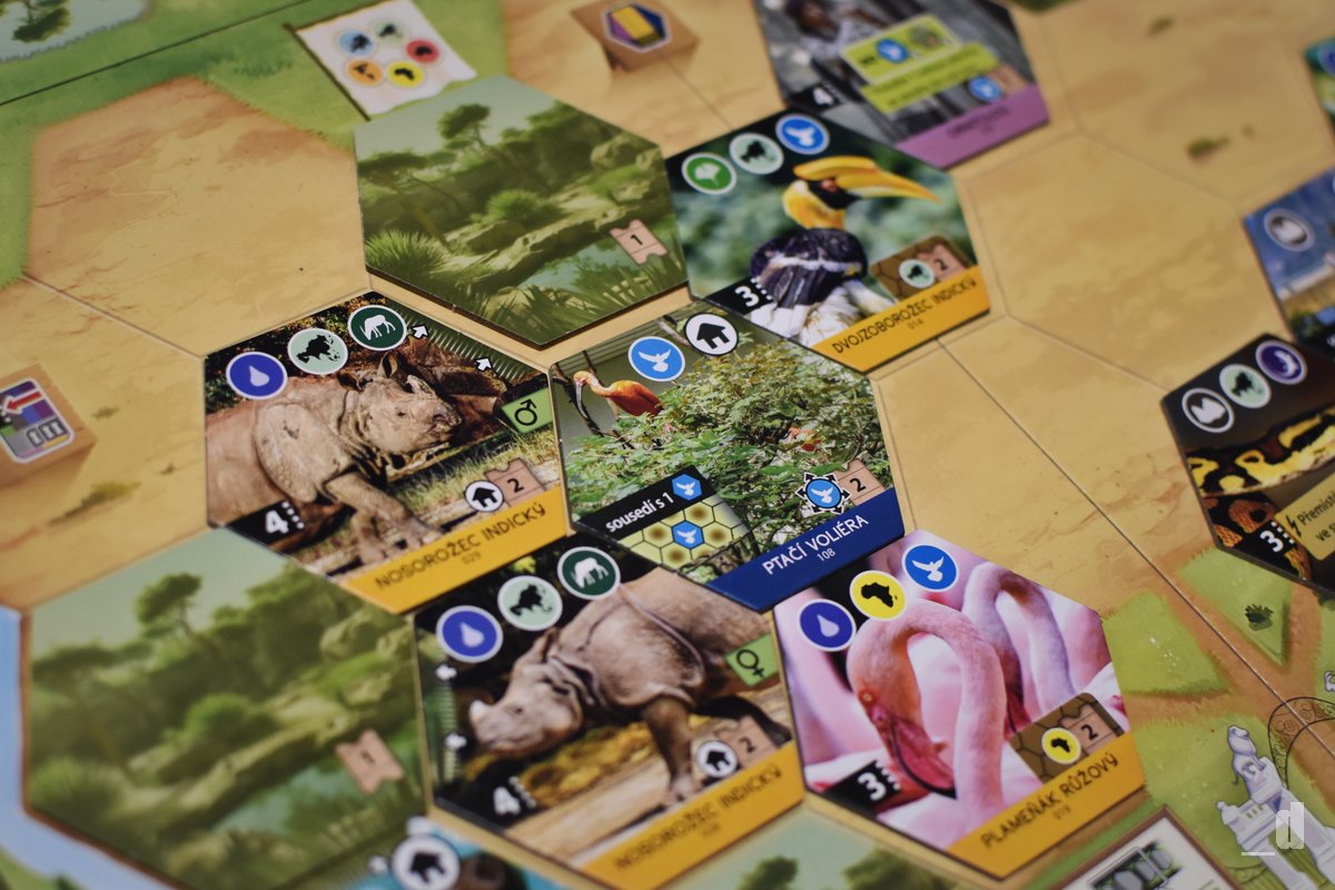 Pokud jste milovníci zvířat, na všechny ty ikony navíc rychle zapomenete a spíš se budete soustředit na jednotlivé obrázky zvířat, které představují výběhy a postupně plní vaši zoo. Tedy, úplně na ně zapomenout nemůžete, pokud chcete během partie uspět. Dalo by se říct, že takovým základem k získání bodů a také ukončení partie, je plnění úkolů na desce ochranářských úkolů, tedy sbírání těch správných symbolů kontinentů a kategorií zvířat. Body ale obsahují například i samotné destičky zvířat a budov a odměna vás čeká i za splnění podmínek pro ukončení partie.