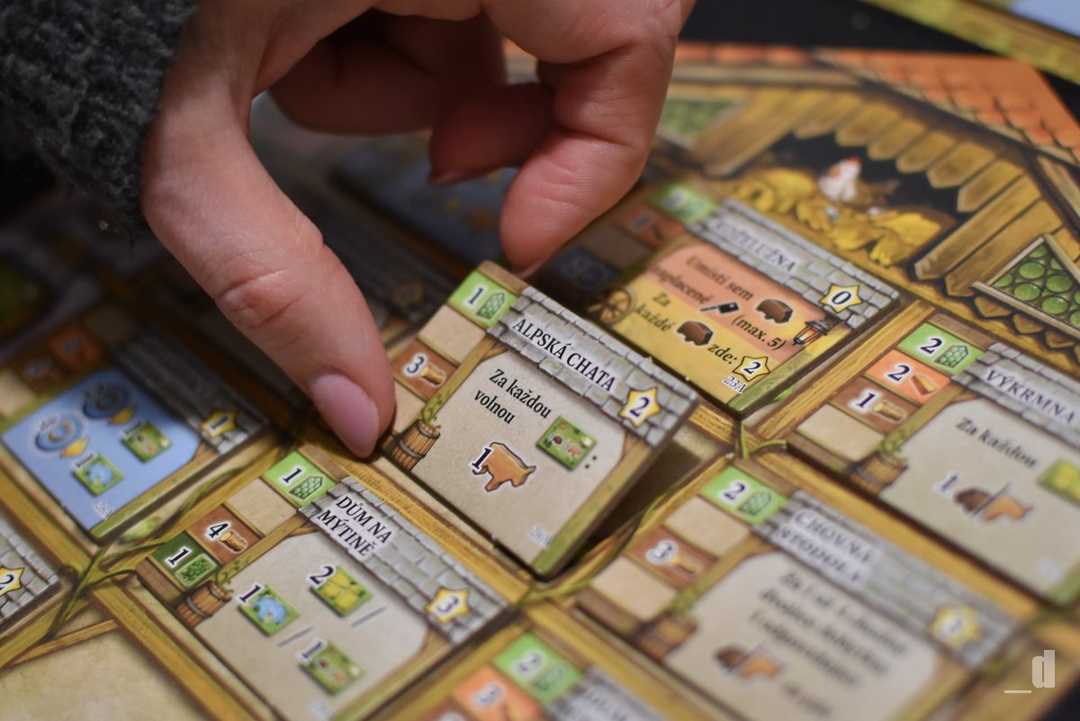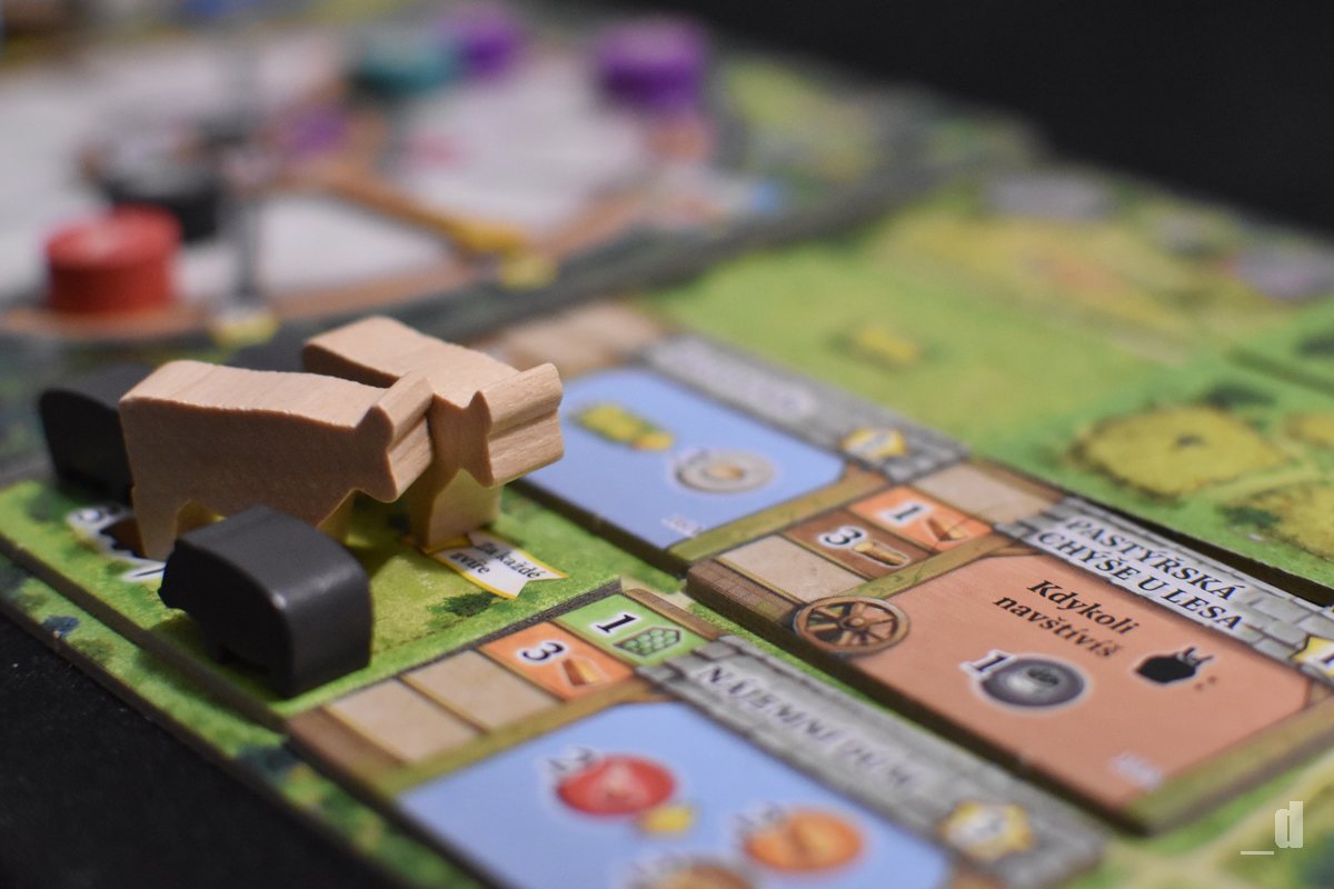 Dobře vyřešen je i třetí pasivní hráč při hře ve dvou hráčích, nijak nepřekáží a celkově si myslím, že nebudete o nic ošizeni, pokud si Černý les zahrajete jako duel. Tady nemám co vytknout, Uwe Rosenberg je zkušený designer, který určitě nenechává nic náhodě a přijde mi, že Černý les zkrátka nemá hluchá místa. Například budovy, ty můžete díky jedné z akcí postavit na svůj statek.