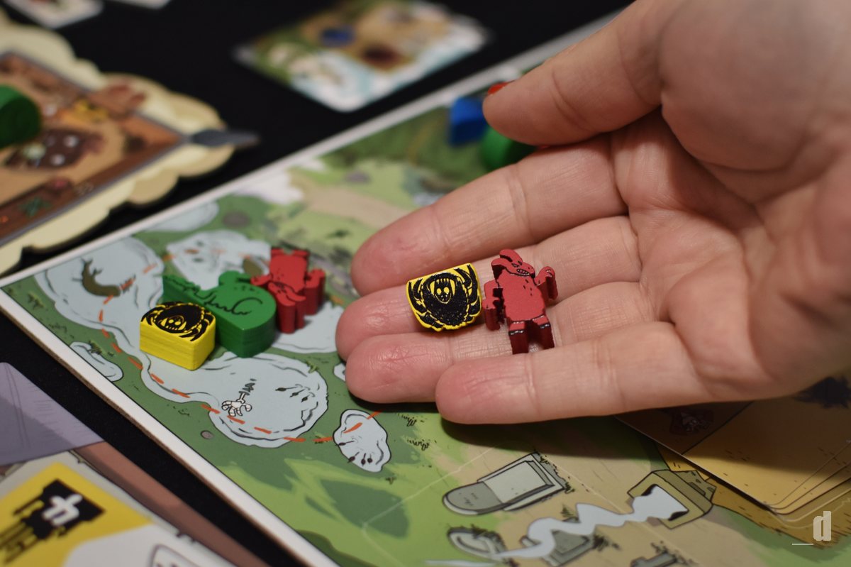 V další fázi můžete využít schopnost Strážce, pokud ji už máte k dispozici, ale až pak přichází to nejzajímavější. Najímání nestvůr. Z bažiny, lesa, nebo žaláře si můžete vzít až dvě figurky stejného typu a umístit je do vstupu vašeho donžonu, a nebo do oblasti, kde už se nachází příšera stejného typu. Dále pak příšery přesouváte mezi chodbami a místnostmi a to na základě toho, kolik příšer stejného druhu jste v předchozím kroku nasbírali. Nezamotala se vám teď trochu hlava? Asi už vám došlo, že Donžon: Strážci v zácviku je logická hra, ve které vás čeká docela dost plánování a přesouvání.