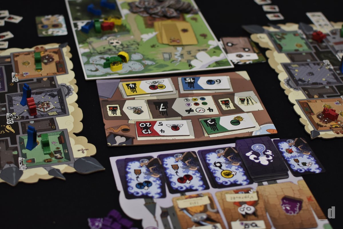 Každý z hráčů se stane uchazečem o pozici strážce, to znamená, že dostane desku donžonu, čtyři nestvůry umístí do jeho vstupu, a také obdržíte první žeton družiny dobrodruhů, kteří se už od začátku partie rozkoukávají v první místnosti. Doprostřed stolu pak připravíte desku moci se zásobami karet a také desku Terra Amata, jako pomyslnou zásobu nestvůr a karet hrozeb. Nakonec je tady ještě deska kanceláře, na které najdete společné úkoly, respektive cíle. Na začátku každého kola pak odhalíte novou kartu hrozby, podle ní nejdříve vložíte družinu hrdinů do vašeho donžonu, nebo nějakou stávající přesunete a následně doplníte příšery do zásob v podobě lesa, nebo bažiny na desce Terra Amata.