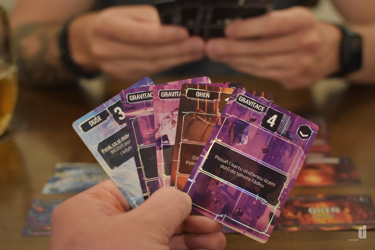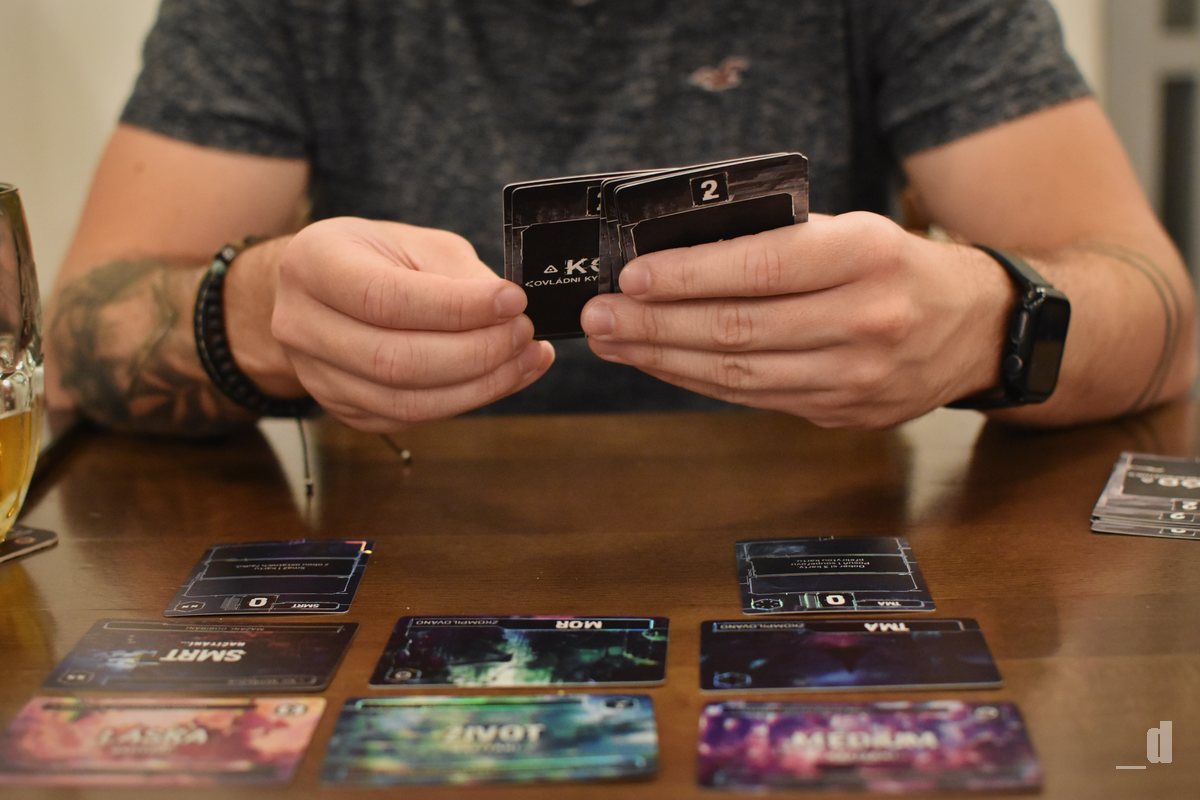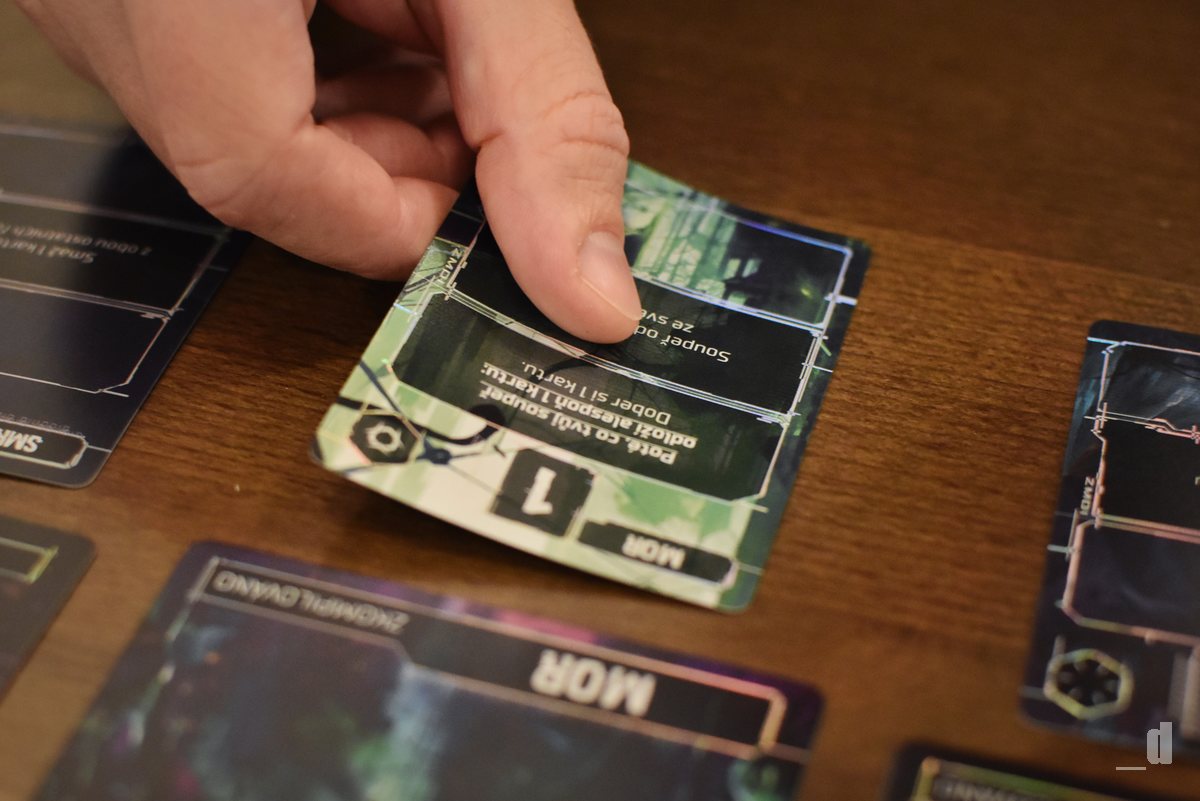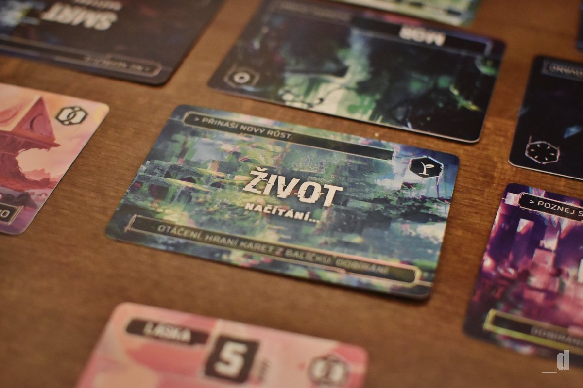 Nejdříve jsem si myslel, že jsme se ujali role dvou programátorů, kteří soupeří v kódování, ale chyba lávky, podle anotace každý z hráčů představuje vědomou umělou inteligenci. V konečném důsledku je to jedno, protože jednotlivé karty protokolů sice nesou názvy jako Smrt, Gravitace, Rychlost, ale mnohem více vás budou zajímat popisky, které prozrazují, jakou strategii příslušné balíky nabízí. Už v základní krabici najdete dvanáct protokolů, které můžete libovolně kombinovat a zkoušet, jak dobře se doplňují, ale samozřejmě to dává prostor i pro rozšíření. Hned to první "Přídavný modul 01" tedy posouvá už tak velmi dobrou znovuhratelnost ještě o kus dál a aktuálně se nám hru zdaleka nepodařilo vyčerpat.