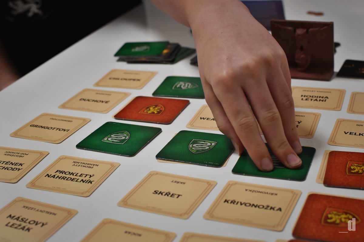 Jedno rychlé oculus reparo a pojďme se podívat, co to tady dneska máme. Spojení jedné z nejoblíbenějších party her s jednou z nejslavnějších knižních potažmo filmových franšíz. Mimochodem není to první hra, která tyto dva světy propojuje, tou první byl jednoduše Codenames: Harry Potter, který vyšel v roce 2018, ale nedočkal se tuzemského vydání.