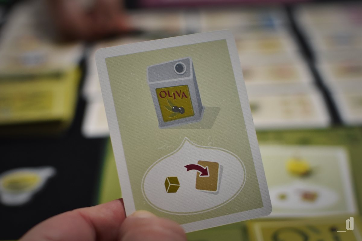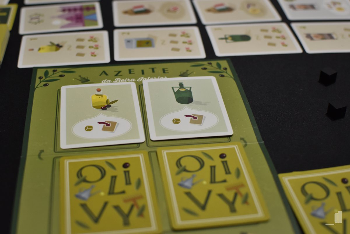 Interakce mezi hráči je vyřešena velmi zajímavým způsobem, protože kopírování dříve zahraných akcí na stole vám může pěkně napumpovat vaše olivové sklady, nebo napumpovat lis co největší porcí oliv. Nutí vás to neustále sledovat situaci nejen ve vašem herním prostoru, ale na celém stole. Jakmile vám dojdou všechny souvislosti a naučíte se karty používat a hlavně každou akci maximálně využít, velmi se zlepší i dynamika celé partie. Aktuálně už Olivy hrajeme tak, že to místy vypadá skoro simultánně. Soupeř zahraje kartu, vám se tím jen verifikuje, nebo úplně rozpadne vaše úvaha, karty které budete hrát už jste si totiž zvolili.