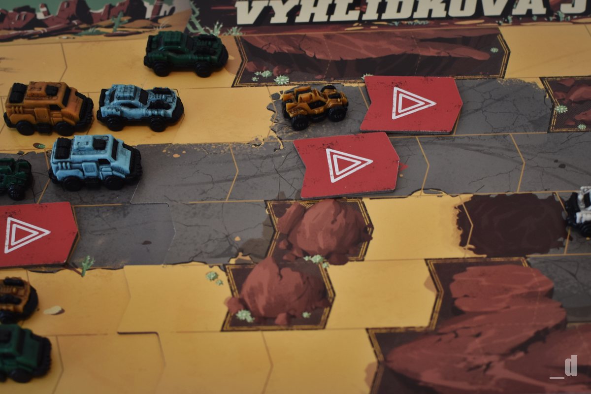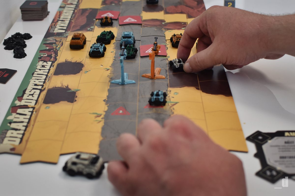 Ne ne, tak jednoduché to nebude. Už jsme se na Deskologu podívali na několik závodních her, které se objevily na českém trhu. V Pekelné jízdě ale nejde až tolik o rychlost a už vůbec ne o plynulé projíždění zatáčkami, tady se snažíte, aby alespoň jedno vaše auto vydrželo až do cíle a ideálně cestou co nejvíce poškodilo vozidla vašich soupeřů.