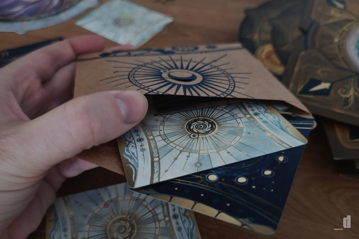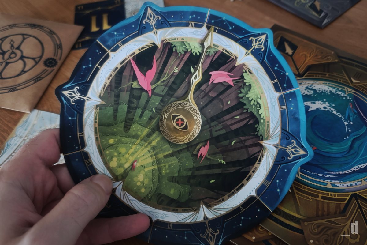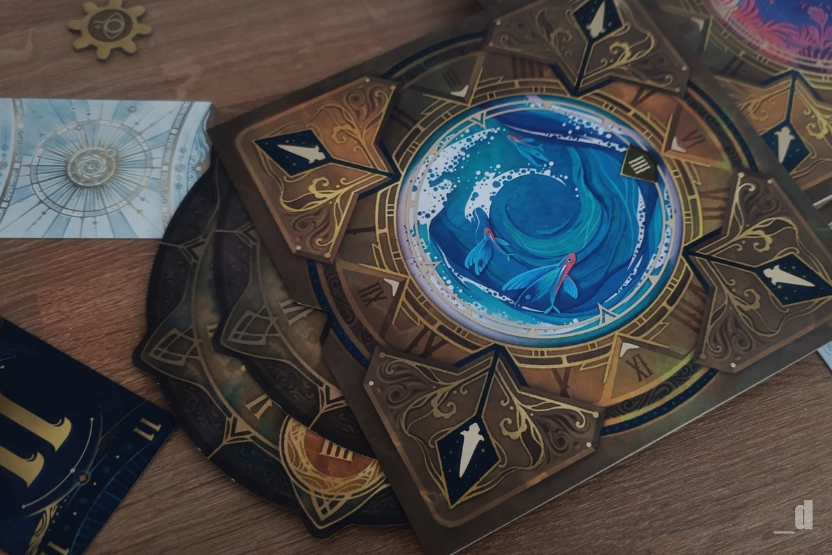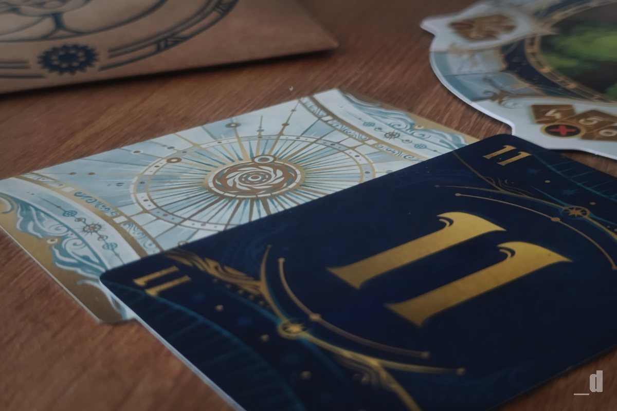Vydavatelství Libellud (Dixit, Mysterium, Dice Forge) si dlouhodobě drží pověst vizuálně působivých her a Síla Času tento standard jen potvrzuje. Každý detail působí promyšleně, s důrazem na estetiku jako nedílnou součást zážitku. Přestože je hra založena hlavně na papírových hodinách a balíčku číselných karet, její zpracování vyzařuje až nečekanou noblesu. Obálky jednotlivých kapitol zdobí zlatý tisk, reliéfní ražba a originální ilustrace pro každou z nich. Samotné karty působí téměř luxusně - pozlacené z obou stran, s propracovanými ornamenty a výrazným číslem. Síla Času je důkazem, že i jednoduchá herní mechanika může díky silnému vizuálnímu pojetí vytvářet nezapomenutelnou atmosféru.