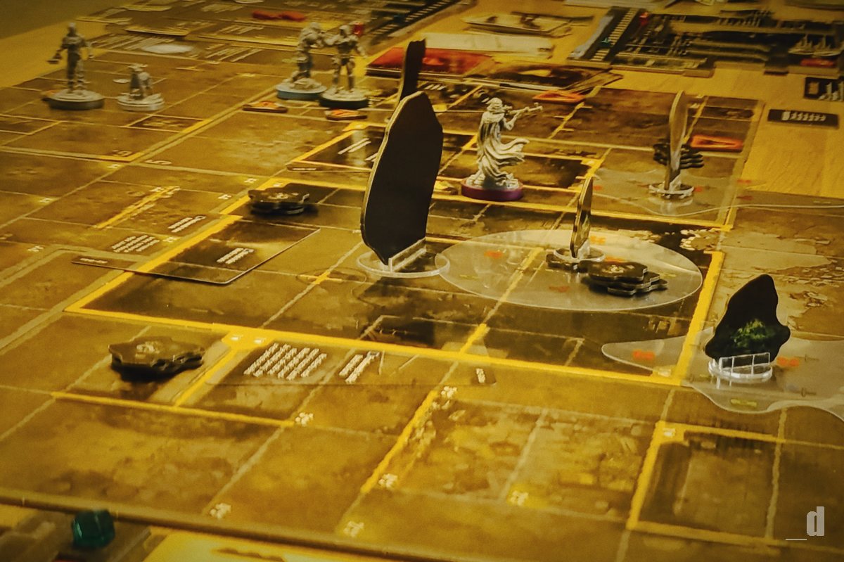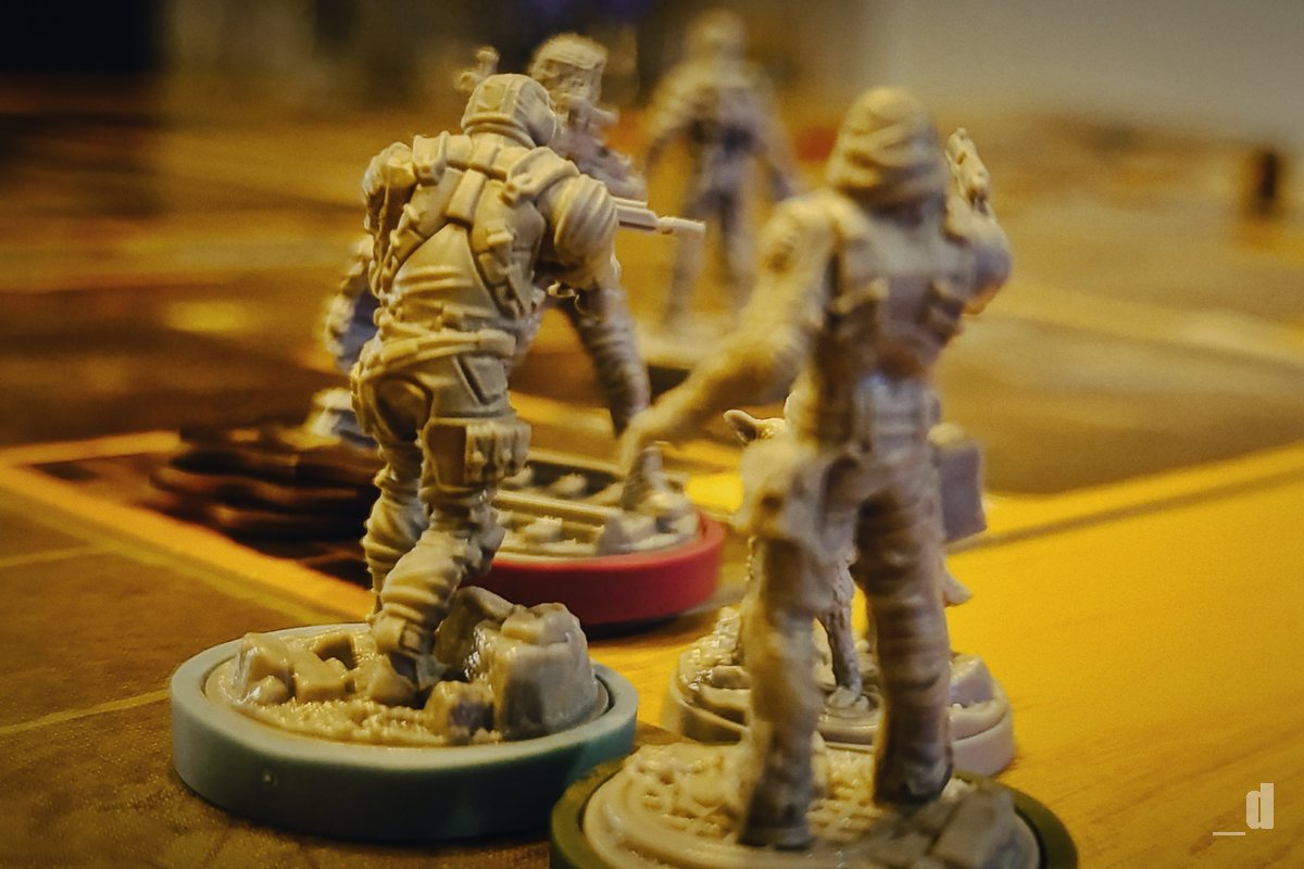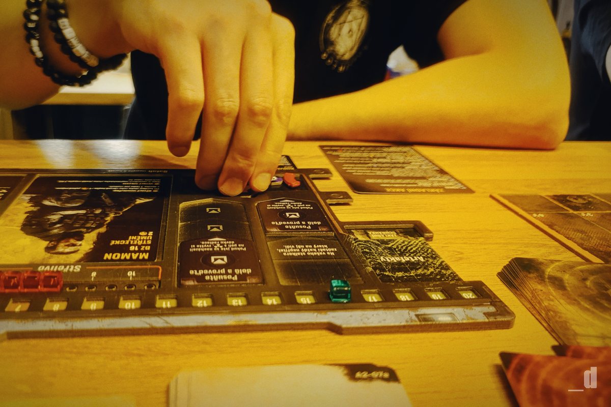 Za cenovku šplhající k necelým pěti tisícům korun dostanete obří krabici, kterou by šlo bez nadsázky používat i místo kettlebellu. Jakmile se vám podaří vybojovat souboj s podtlakem při otevírání víka, naskytne se vám pohled na záplavu kartonových, plastových i papírových komponent, ze kterého se vám protočí váš Geigerův počítač. Úplně prvním a zároveň nejdůležitějším materiálem jsou samozřejmě pravidla. Hlavní sešit má úctyhodných 44 stran, což je porce, ze které by znejistěl i ostřílený deskoherní geek jako já. Naštěstí je tu i druhý sešit, Průvodce hrou, který vás krok za krokem provede simulací první mise. Mně osobně to výrazně pomohlo pochopit tok hry ještě předtím, než jsem se ponořil do detailního studia pravidel. Příprava takto robustní hry je sice takový "pain in the ass", ale u her tohoto typu se tomu zkrátka nevyhnete. Naštěstí jsem mohl využít hned dva stoly, což se ukázalo jako ideální řešení. A právě tímto oslí můstkem se plynule dostáváme k první fázi hry…