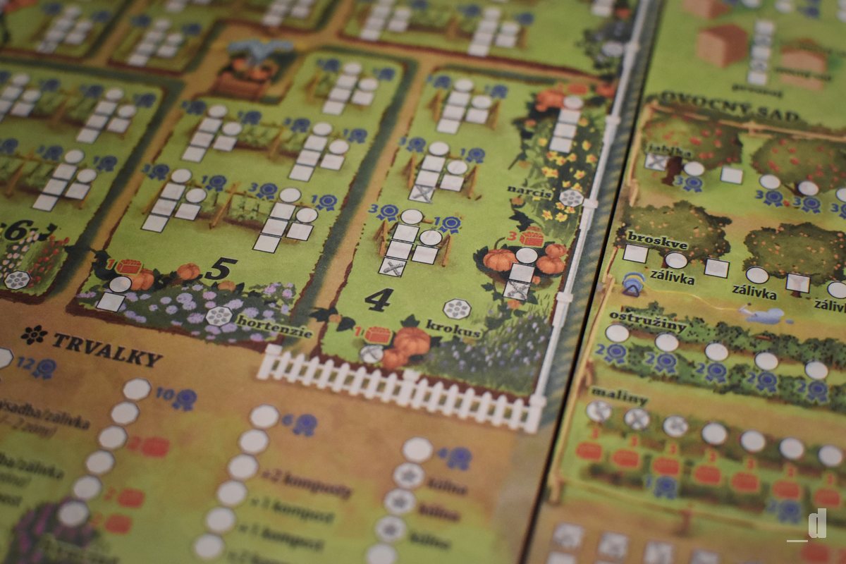 Už to zkrátka roste! Jednotlivé akce se pěkně doplňují, protože některá políčka obsahují bonusy, možnost dalšího "zaškrtávání", které opět může přinést další bonus. Celou dobu navíc musíte sledovat vybavení vaší kůlny, protože efekty jednotlivých nářadí mají přímý vliv na zbytek herních listů a opět vám během vašeho zahradničení přinesou další bonusy. Tohle je přesně ten typ kombící hry, nad kterou místy sedíte jako nad osmisměrkou a nevíte, co dříve. Tedy přesně to, co mám na deskovkách rád. Po několika partiích pak doporučuji do hry přidat i rozšíření Rozmary počasí, díky kterému mohou být kola ovlivněna některým z pěti efektů a to jak pozitivně, tak negativně, což je další proměnná, se kterou musíte počítat a zároveň je potřeba ji neustále sledovat.