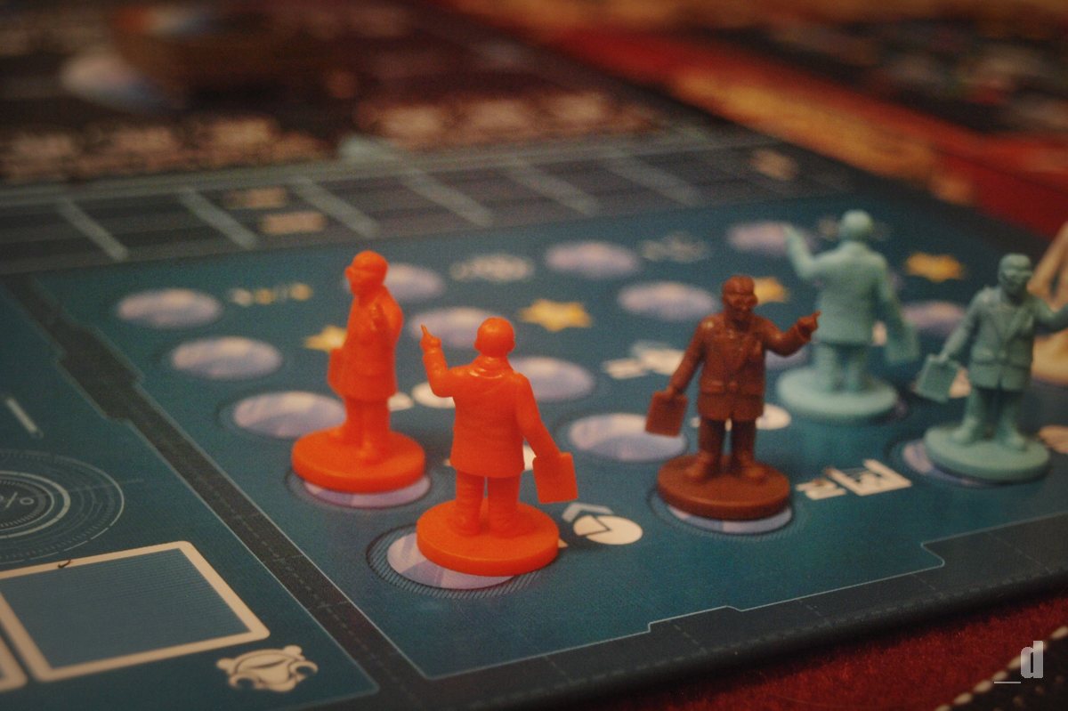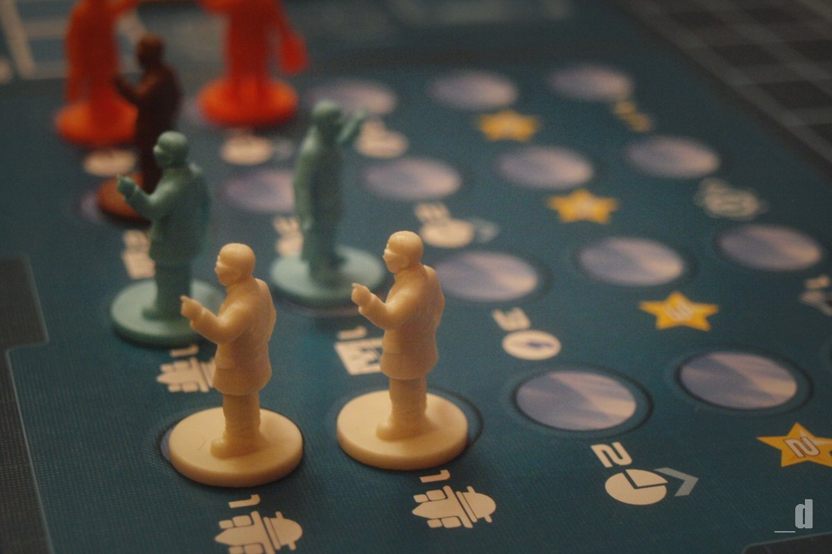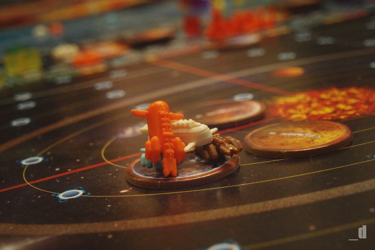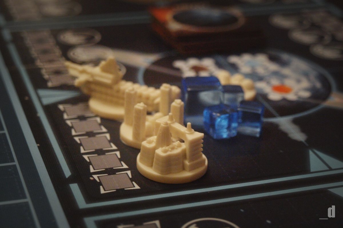 Jednotliví hráči mohou hrát v první fázi několik tahů, dokud se jim akce hodí či ji mohou využít. Pokud se rozhodnou svůj tah ukončit, slouží k tomu speciální passovací žeton, který na konci fáze přináší různé výhody, například zmíněné suroviny, nebo palivo. Pokud ale odehrajete všechny své akce a passujete jako poslední, nejen že v další fázi budete hrát jako poslední, což je nevýhodné, ale také přijdete o možné bonusy. Tedy už v první fázi je potřeba plánovat dopředu, co všechno můžete a chcete v daném kole zvládnout, abyste si nenaběhli. Ještě bych měla malou výtku ke kulatým plastovým žetonkům hráčů, které se dají štosovat na sebe a bez pořádného nehtu nebo nože je prostě od sebe neoddělíte. Doporučuji je buď poskládat vedle sebe, což evidentně zamýšleno nebylo, nebo je dát na sebe, ale nezatlačovat je.
