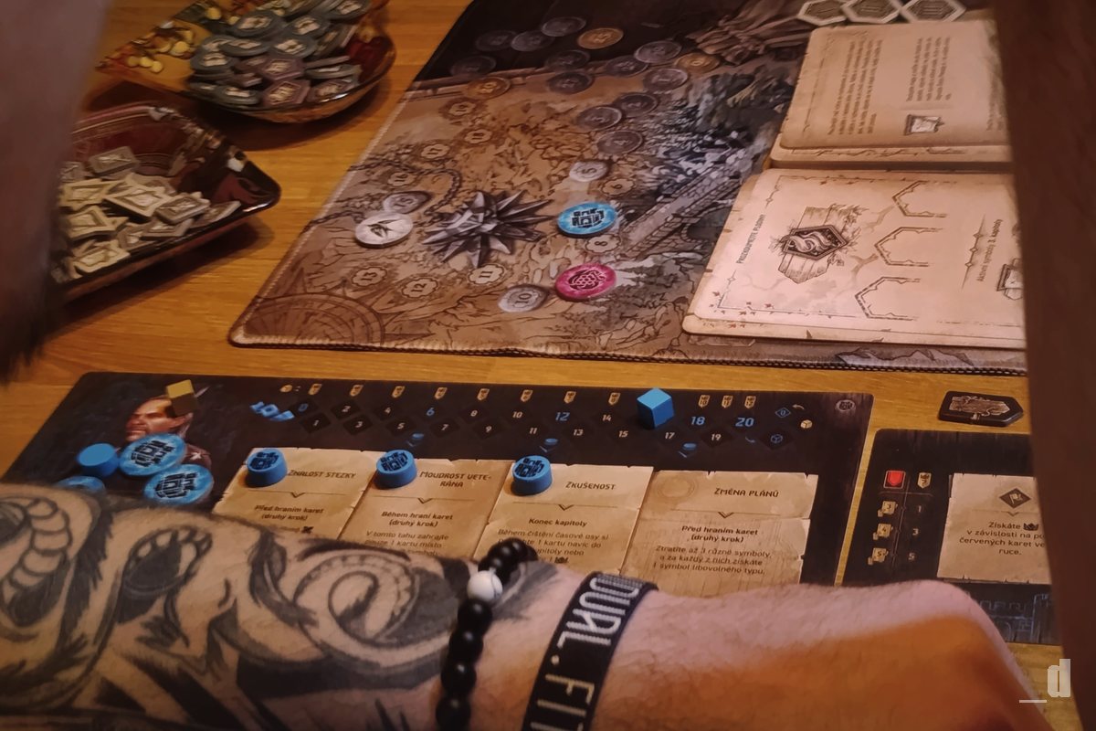 Zaklínač: Cesta osudu je ve svém jádru vlastně velmi jednoduchá hra. Pokud bych ji měl popsat co nejstručněji, jde o sbírání symbolů a jejich proměňování ve vítězné body. Z mechanického hlediska se tak blíží spíše abstraktnímu designu, na který je téma světa Zaklínače do jisté míry naroubováno. Přesto to funguje překvapivě dobře a dokáže ve mně vyvolat ty správné pocity. Jelikož většinu povídek znám, rád se při hře zaposlouchám do jednotlivých kapitol příběhu, i když na samotnou strategii to vlastně nemá žádný vliv. Velkou zásluhu na tom má také vizuální zpracování, které této "abstraktnější" mechanice dodává působivý tematický kabát. Ať už jde o netradiční herní podložku nebo o velké karty příběhů s krásnými ilustracemi. Jedinou výraznější výtku bych měl k pravidlům: na tak jednoduchou hru jsou napsaná poněkud nešťastně a po prvním přečtení jsem vlastně neměl úplně jasno, jak se hra hraje.